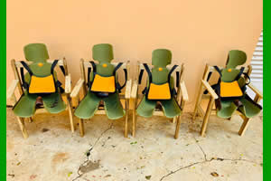 Le corset siège a pour but de maintenir le patient en position assise tout en ayant un rôle préventif sur d’éventuels troubles orthopédiques au niveau du bassin, des hanches et du rachis. Il a également un rôle important dans le développement social de la personne.